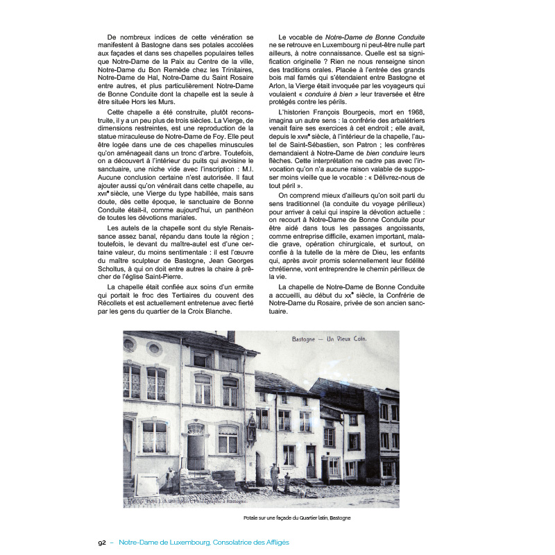 En 1666, les habitants de Luxembourg, après en avoir reçu l’autorisation, se plaçaient officiellement et en grande pompe sous la protection de Notre-Dame, Consolatrice des Affligés ; douze ans plus tard, c’est tout le Duché de Luxembourg, qui incluait Bastogne, et le Comté de Chiny qui faisaient de même.